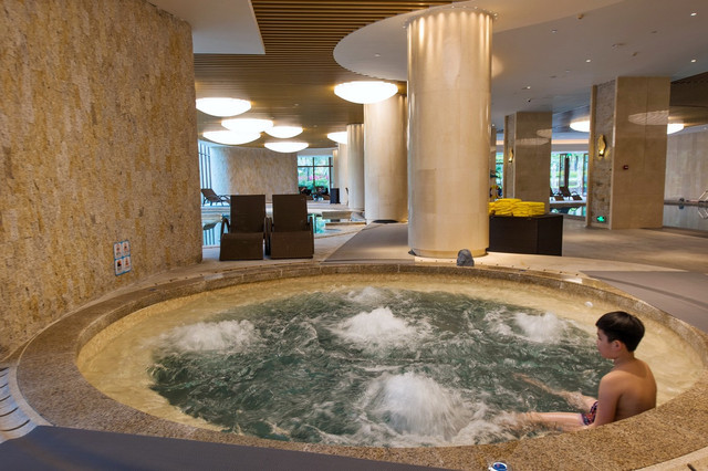 除了室外温泉,室内还设有温泉SPA、石板屋、恒温游泳池、矿泉泳池等区域。