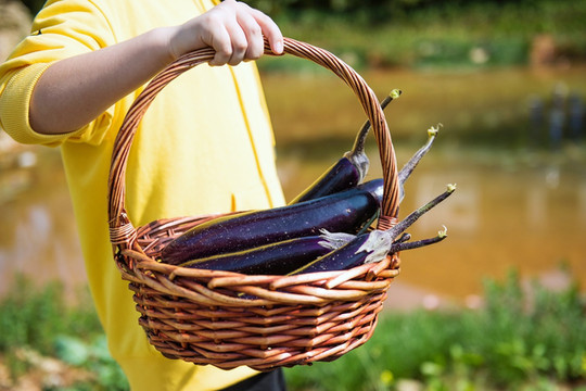 摘下的茄子等有机食材,全部都是可以免费带回家的额。
