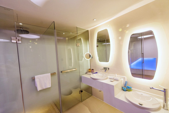 标准五星级豪华配置,独立淋浴间,独立卫生间,吹风机,洗浴用品,拖鞋,浴衣,化妆放大镜应有尽有...