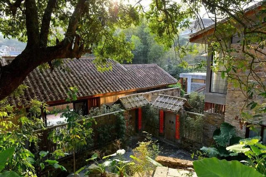 秉承节能环保、绿色建筑、与自然共生的设计理念,建筑材料主要取材于当地,青砖黛瓦、藤蔓葳蕤,罅隙处填满青苔,青砖老木斑驳却不失生机。墙体主要为灰砖墙和石头墙加以黄泥饰面,原料丰富、节能环保。屋顶旧瓦,青砖收购于当地村民破屋旧房遗留下来的“废品”,变废为宝。如此结合,建筑具有本土建筑文化特征,又省本节能。一砖一瓦,一枝一叶都在经年累月的磨合中契合重生。