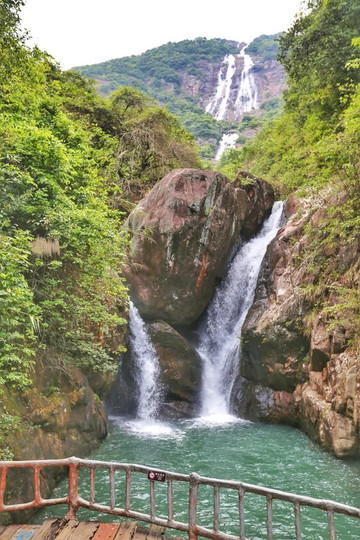 海船木栈道与登山步径起步点相接,通至1499级瀑鸣台。栈道亲水而建,沿途并有多个凉亭和观景台。漫步其中,可以一边观瀑戏水,一边呼吸清新空气。行至1499级,即可抵达第一级零距离触瀑点--瀑鸣台,感受瀑布奔流直下的磅礴气势。之后沿石阶而下,可达899级观光车站,选择以车代步,逍遥到底。