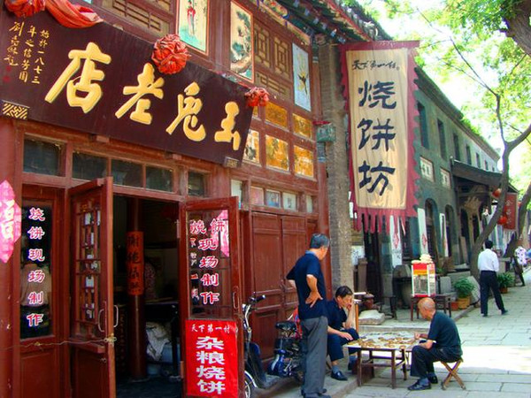 走进周村古商街,人们会看到街内店铺鳞次栉比,像几家前店后厂的周村风味烧饼店、卖药的三益堂、异芝堂、卖茶的鸿祥茶庄、经营古董的聚宝斋、经营香烟的英国希尔顿店、瑞蚨祥、谦祥益、大染坊、大清邮局等比比皆是。童叟无欺、各色杂货的宣传彩旗,飘舞在一些店前,点缀着商街的古朴色彩。