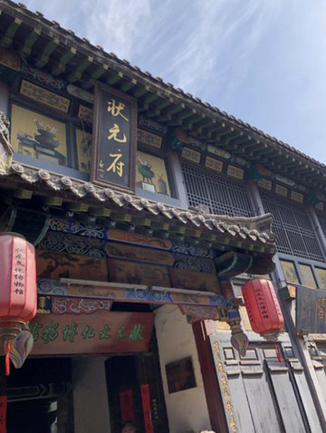 状元府相比大染坊更加气派一些吧,状元府距今已经有300多年的历史了,是周村古商城最古老也是最具特色的古式院落之一。三进三出的大院子很显气派,是典型的北方四合院,院落里面有后花园还有演武场。既雅致又不失活泼。