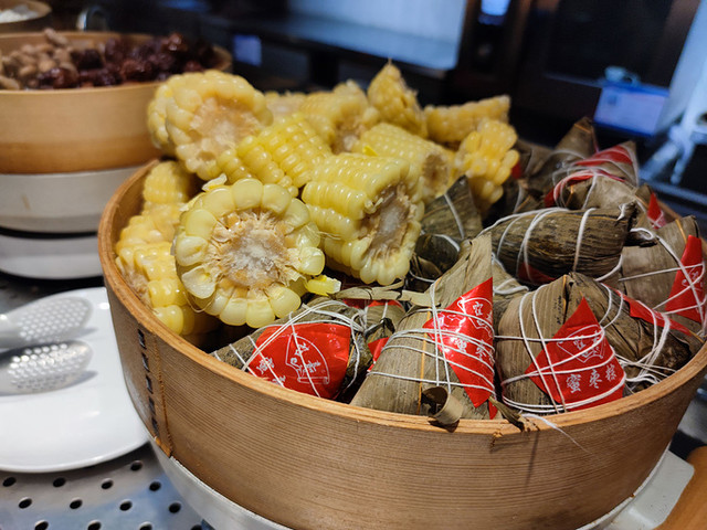 餐品丰富多样,从鸡蛋油条到粽子玉米,从咖啡牛奶到果汁豆浆,从小朋友喜欢的肉肉到适合老人的豆腐脑,花样百出,种类繁多。