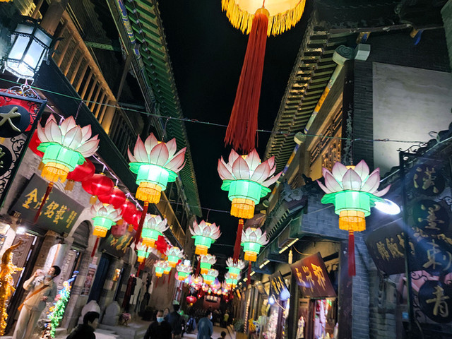 一出门,就看到了眼前的灯会,整个古城华灯璀璨,每朵花灯都有特点。