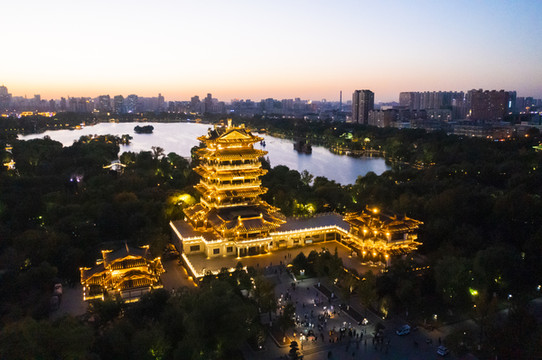 10月16日起,济南超然楼亮灯时间调整为每天17:40分。