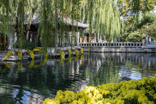 秋日趵突泉的金秋菊花展,各种颜色的菊花争芳斗艳,吸引了无数的游客前来观赏。