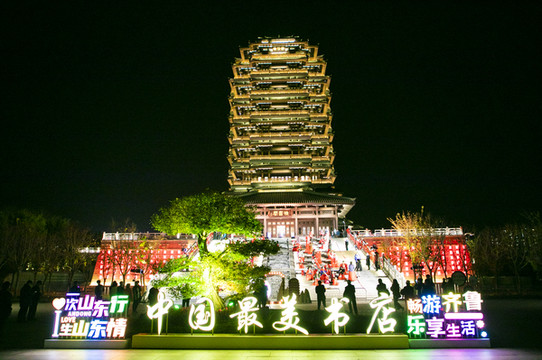 海岱楼的里面就是被誉为“中国最美书店”的钟书阁。这个极具创意设计的书店,充满了文学和艺术的气息。你可以在这里寻找到各种各样的书籍,不过读书的人不多,更多的是年轻人来这里拍照打卡。