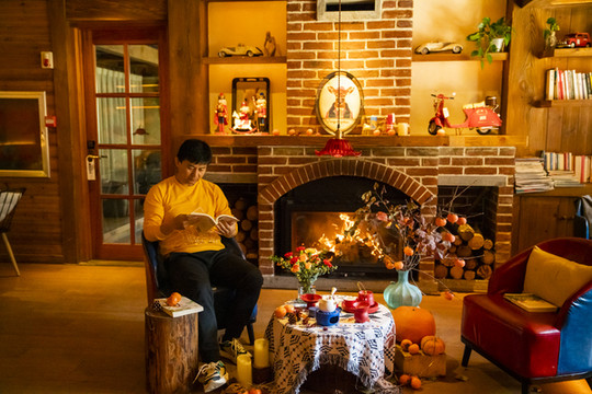 九如山还是文艺的,各种民宿、木屋、书吧、手工体验坊等,特别适合亲子和情侣来休闲度假。如今木屋里的壁炉已经点起了炉火,围着火炉,与心爱的人在一起能消磨一个下午。