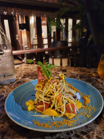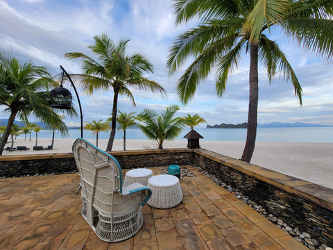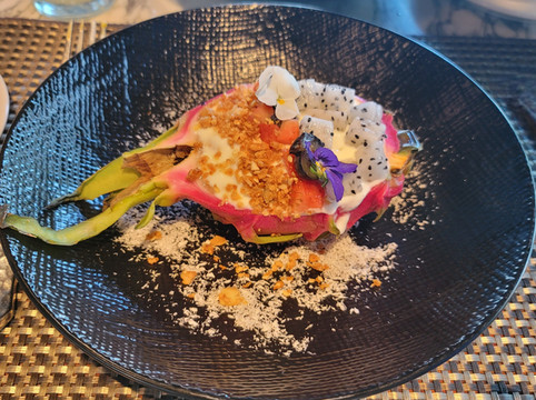 作为顶级五星级酒店品牌的半自助早餐,选择的确更加丰富,想要一个早上就把自助区的食物都尝试过,不太可能实现。而点的主菜选择也不少,整体出品都不错,特别是摆盘,精致无比。还有很多当地特色的食物,例如不少椰子和芒果相关的饮品和甜品,最后连水果都是每一款都足够成熟可口。就餐区域没有墙壁,可以被海风吹拂,又不会被阳光照射,在这样的早上,即便没有空调作伴,也没有闷热的感觉。
