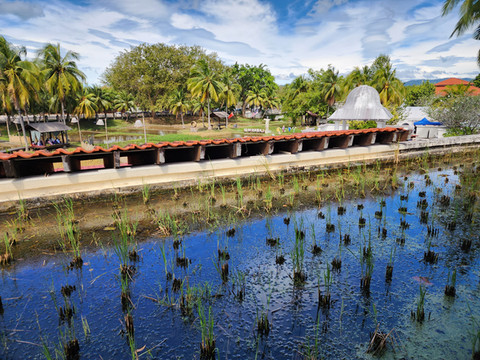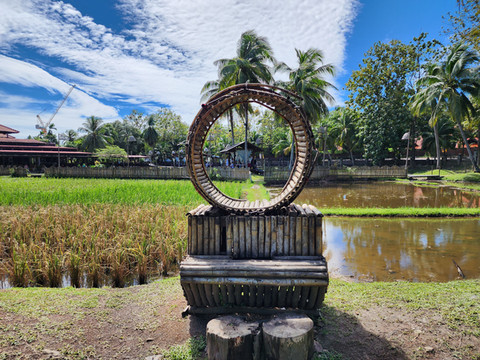 用过早餐的我们,今天需要更换酒店,稍微休息,寄存行李之后,趁着阳光正好,先走一下Laman Padi Langkawi,这个博物馆提供了一些和本地有关稻米业的图表、相片及器具等,在博物馆主体建筑的顶层有屋顶花园,分成数块地以种植芬芳的稻米,另外大片的土地都是一块块水田。