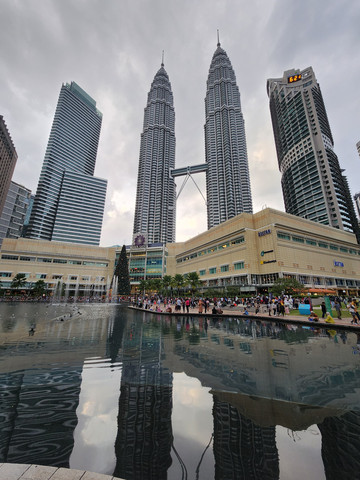 到达吉隆坡的第一印象是人多,无论是轻轨LRT站还是购物中心Suria KLCC,甚至连公园KLCC Park和天桥Pintasan Saloma也是人满为患,而且人流是持续的,从我们下午到达到晚上10点多,人潮似乎都未散去多少,不知道是不是因为周日,人潮中除了游人,应该还是有不少本地人。KLCC Park是拍摄全球最高的双子塔建筑Petronas Twin Tower最理想的地方,配合人工湖形成的倒影,很是壮观,白天和夜晚,景致也是不一样的,晚上搭配其建筑白色的灯光,更加凸显其高耸。