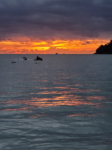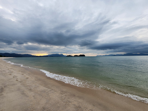 在回Pantai Cenang的路上,偶然看到天边的晚霞,虽然只有在海天相连的一小片区域存在,却和几乎霸占了整个天空的灰色差异极大,自然非常显眼。