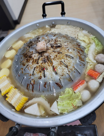晚餐时分,Tem Xim Charcoal已经有不少食客,这家店铺用的火锅器具是和烤肉混合在一起的,类似于韩国烧烤和中国火锅的结合,与韩国烧烤的差别在于泰式火锅大多以传统的方式,使用木炭起火烹煮,而韩式烧烤则大多使用烧烤架,这家价格实惠,汤底清甜,通心菜和粉是可以免费续加的,饭后还有雪糕作为甜品。