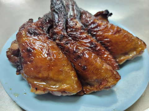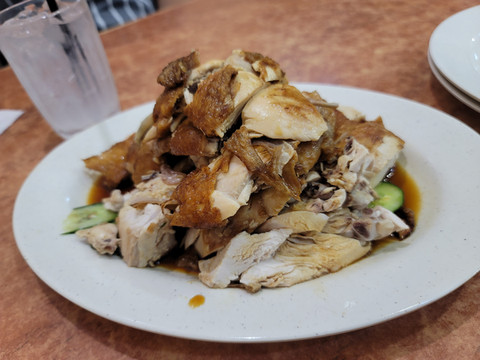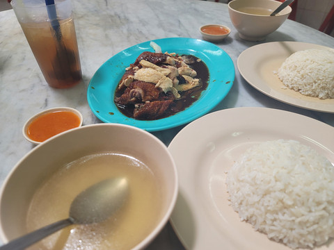 走着走着已经是下午茶时间,距离伍秀泽海南鸡饭不远,便去一试,到达的时候说店员只有烧鸡,只剩下一点的白切鸡,我们都要了,价格实惠是最大的优点,鸡肉还是略微柴,而且我们都觉得烧鸡比较好吃,虽然白切鸡更快售罄。