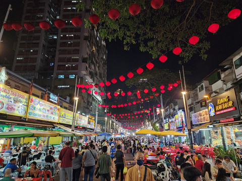 等我们吃完已经是晚上十点半,以为会人流减少了,结果离开餐厅回到街上依旧还有很多人才刚刚坐下,热门的店铺依旧是高朋满座,回到Bukit Bintang,堵车情况并没有半点减少,灯火通明的街道令人无法相信这是晚上十一点的时光。