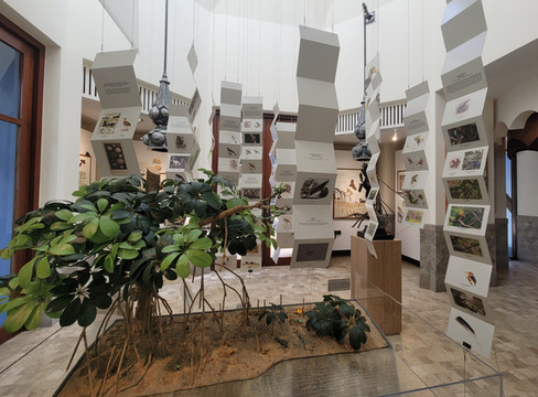 继续游览一下度假村内的设施,偶然发现一个有两个玻璃塔式圆顶的建筑,进去才发现是这里的Geopark Discovery Center,度假村所在地是一片红树林保护区,所以这里主要介绍的是和该保护区有关的信息。估计也是因为这里良好的自然环境,松鼠到处可见,不时就会出现在墙头和树脚,甚至草地上都有看见过,不过猴子只在第一天导赏的时候看到过。