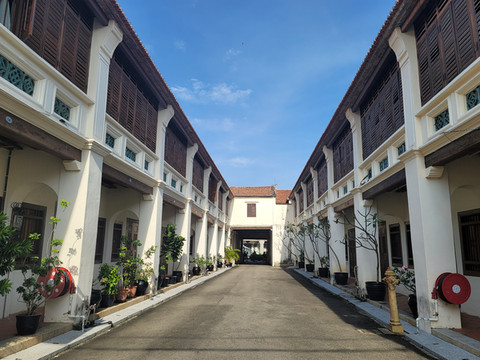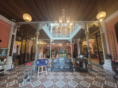 到达被称为蓝屋的张弼士故居才发现,这座已经改建成精品酒店的历史建筑,不能随便进入参观,必须预约,只能在门外一睹风采,这是马来西亚现存最大的中式园林建筑,同时也隐藏着很多中西合璧的元素,而张弼士曾是南洋首富,也是张裕葡萄酒的创始人。