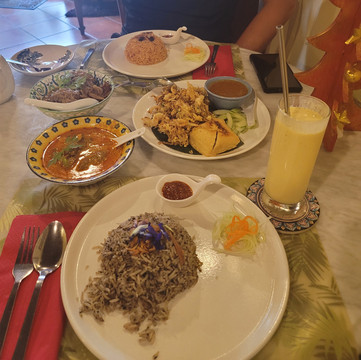 晚餐时光,我们选择了出品娘惹融合菜的餐厅Jawi House Cafe Gallery,用餐前先到了楼上参观,虽然楼上现在已经居所,但是还是可以从陈设和布局看出一些当时下铺上居的风格。改良版的椰浆饭,配合充满椰奶的咖哩,味道很出色,羊肉口感不错,不过肉质太厚,咖哩味道未能完全透入肉内。不过牛肉就一般了,咖哩味道还是很好,但是肉质太老。