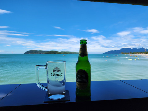 这里有两座白色的建筑物架在海边,上面是名叫THE CLIFF RESTAURANT的酒吧餐厅。在这里可以北望整个Pantai Cenang,自然成为了一个很好的落脚点。我们坐在吧台边的高脚椅,喝着冷饮,躲避着午后最强烈的阳光,看着远近各种戏水的人们,一种惬意的人生。只是午后,乌云开始慢慢统治天际,一点点地侵蚀蓝天的位置,当我们闲坐到下午两点多,往回走时,日照已经不太强烈了。