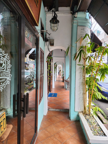 穿过Lorong Stewart和Muntri St,这里有着很多依旧保持下铺上居的,在新加坡和马来西亚被称为店屋的骑楼,这些建筑大多在19世纪就已经存在,而且至今还保留着原始的使用方式,而不像广州残存的骑楼建筑群,大多出现在一战之后,而且很多已经被完全改变原来的使用方式。