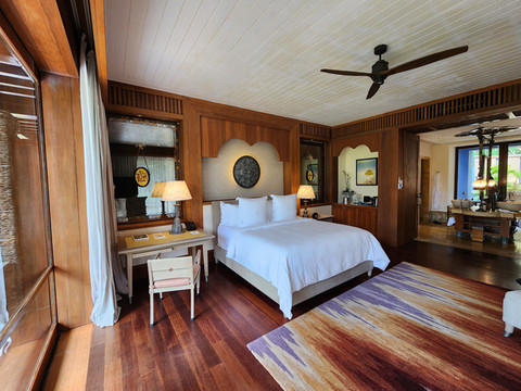 为了感受一下兰卡威各种不一样的沙滩,我们从南部转到北部,体验一下位于Tanjung Rhu的Four Seasons Resort,这里位于世界地质公园内,而且几乎将整个沙滩包围在内,整个度假村的自然环境无与伦比,特别是位于北部的Villa彷佛藏在一片森林之中,我们住的房间虽然不是独立屋,但是基本没有房间之间的相互影响,而房前的草地,犹如自家的前庭花园。