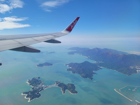 在香港入冬以来最冷的一天,却有着这一周最好的蓝天和阳光,当飞机从跑道升空,窗口下的大屿山很快就呈现出了全貌,即便只是看到在淡蓝色的海面上散落的小岛屿,都引得我们心情激动,直到景色被云层阻隔,我们才在座位上休息。