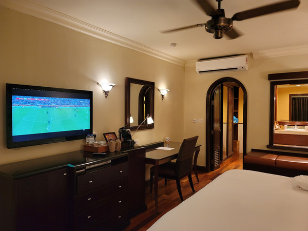 第一天的行程只有航班和机场,吉隆坡转机兰卡威,需要KLIA2等待一段时间。对比香港国际机场的冷清,这里其实相对热闹,人流密集度相对高,只是作为AirAsia国内航班的航站楼,店铺本来就不多,要在这里等待登机是一个比较无趣的地方。刚刚降落的时候,天色还是浅浅的乌云,我们第二程的航班却不断延误。入夜,还下起了大雨。将近晚上九点,才终于看到前置航班的飞机到达,这个是本来预计到达的时间,然而我们还在登机口看着打在玻璃上的雨点。将近晚上九点半,终于可以登机。晚上十一点多,终于到达兰卡威的酒店Casa del Mar,我们是当天到达的最后一组游客,但是依旧有职员为我们准备了Welcome Drink,为我们介绍了房间的设施。房间里面还准备了一些零食和水果,都是免费提供的,这是一个有地中海风格的私人小庭院,房间内也有南洋风格的吊扇,偌大的空间,整体令人感到舒适,只是整洁程度可以略微提升。