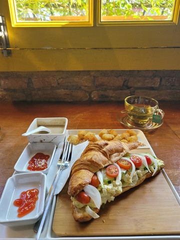 第七天,酒店旁边的W life Cafe,今天意外地开得比较早,不知道是不是因为有活动,我们一早就被外面的装潢吸引,所以自然进去一试,作者面向街道的窗边,似乎有一种回到18-19世纪时光的感觉。食物的质量非常好,作为早餐太丰盛了,还有一小碗的蘑菇汤,无论是伴着面包或是直接饮用,都是美味,无论是牛角包还是帕尼尼,表面都做得很香脆。