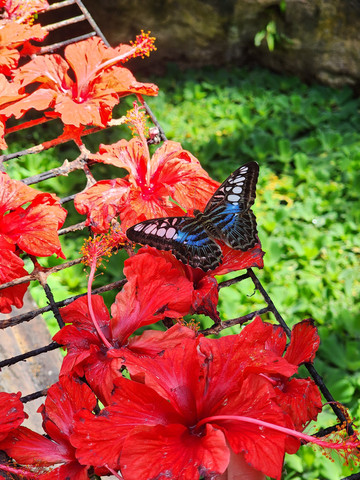 之后前往Entopia by Penang Butterfly Farm,这是一个用模拟生态园概念构建的景点,整个园区内可以体验蝴蝶在身边飞舞,还有一些花果放在地面,用于吸引蝴蝶,不时有不同品种的蝴蝶会停在游人身上或者手上,我们也不时追着蝴蝶拍照,从园内还可以了解到蝴蝶的生活习性和品种,还有一些其他昆虫和两栖动物可以观赏,虽然看起来一个不大的地方,走走看看也近两个小时。