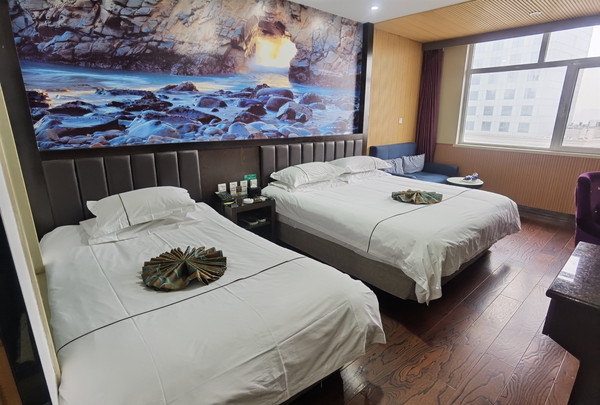 前台人员非常贴心,为我们快速的办理了手续,并看了我们的健康码,我们家有两个小家伙,便贴心地问,需不需要儿童拖鞋?儿童浴袍和儿童牙刷沐浴露,我们一边说你们还有这个呀,小姐姐微笑着服务呀,是为小朋友们专门准备的,这时候便已经告诉客房的服务员,为我们放到了房间,看前台有零食和水果热情的招呼我们尝尝,办理完手续,我们便进入到了房间,我们定的是一个亲子房,一张大床和一张1.2米的小床,我家老二太小还需要和我们一起睡,便让老大睡在了小床上,房间面积很大,卫生做的也很满意,一尘不染,设施设备也很全面,加湿器什么的都有,一到房间还有一股淡淡的消毒水的味道,闻了让人非常的安心,房间也有很大的窗户,能直接看到外面,明亮通透。