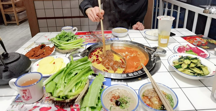 从动物园出来,已经是下午五点的时间了,我们便开始坐车去吃饭,听说沧州新开了贤合庄,我们闲来无事,便决定去尝尝,听说荣盛有一家御河新城也有一家,我们去荣盛吃,因为吃的还比较多,比较全!荣盛是一个国际购物广场,123楼都是卖东西的衣服啊,鞋包啊,商场四五楼便是吃的了餐饮类。