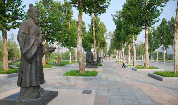 但是要戴好口罩,出示人员绿码才能进,进园以后就能看到好多沧州名人的塑像,也终于知道为什么叫名人植物园了