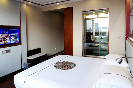 吃完饭以后天色见晚,我们也没打算着回去,因为第二天还要回孩子的姥姥家,所以就在沧州住下了,我们选了一家酒店,是在信誉楼周围的名叫每家酒店,这家酒店外表看起来古香古色,一进大厅也有这种感觉,房间也是,但这家酒店最出彩的地方不是他的装修,而是他的服务和体验,因为我们是晚上到的,一进门便会有前台人员向你打招呼,并介绍过一会儿就会有暖胃夜宵粥,饿了可以下来吃,都是免费的,我观察到一楼还有办公区和会客区在上电梯的时候,我看到电梯上有标记,还有健身房和洗衣房,我们全家订的是七楼的房间,七楼房间比较高端,我们一家三口住很好,房间里的床品也都是乳胶床垫的枕头,有我喜欢的荞麦皮枕头,洗发水老婆说是阿道夫的,很好用,看到还有小魔方说能够拼齐就可以带走
