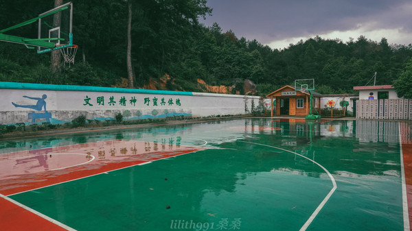 村里只有一所小学,可是这里的学生本事挺大,国学特别好,还有个超大的篮球场。