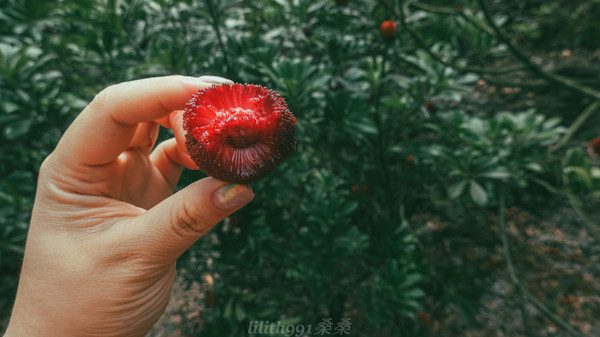 一边摘一边吃,鲜红的汁水顺着手指流下。