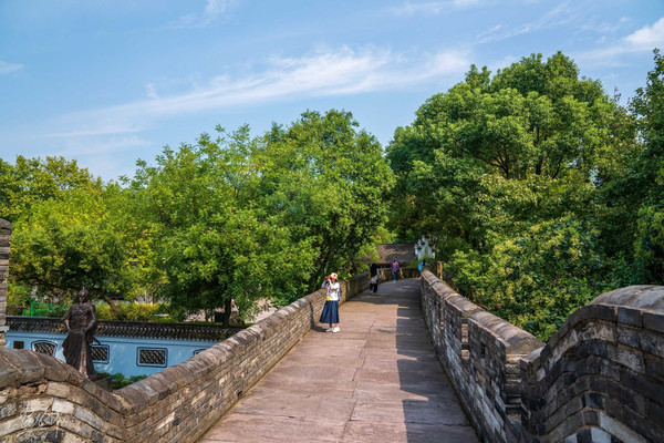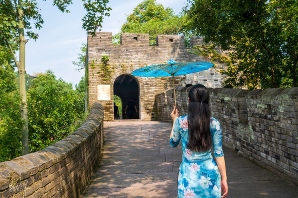 临海 的两天一夜因为有了悦悦变得更加赏心悦目,穿着旗袍的婀娜女子步行在这小桥流水、亭台阁楼之间,很有意境。特别是在 江南 长城上回头俯瞰东湖,它就像是一颗碧玉镶嵌在这个古城里,一汪湖水更是带给了古城有灵气的生命。