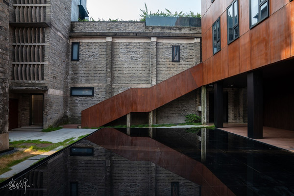 第二天一早醒来,阳光透过窗户,满满的幸福感。这是一个建筑群没有疑虑了,昨天因为到的时间是逆光没怎么拍摄,今天就可以好好看着整个民宿的建筑美,一楼的水池倒影真是绝美的设计,可以让人看到既古老而又新潮的几栋建筑的结合。