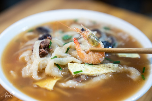 老板娘倒好,又拿起她的锅去给我们煮虾了。这还是我第一次见到可以续主料的店了。15块钱一大碗,就是主食啊。麦虾本来就是用麦粉调成的有韧度的粉浆,用筷子将浆糊削成一条一条下锅了,就成了现在的形状,像虾一样。