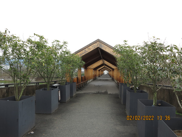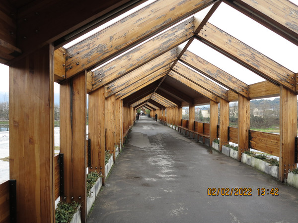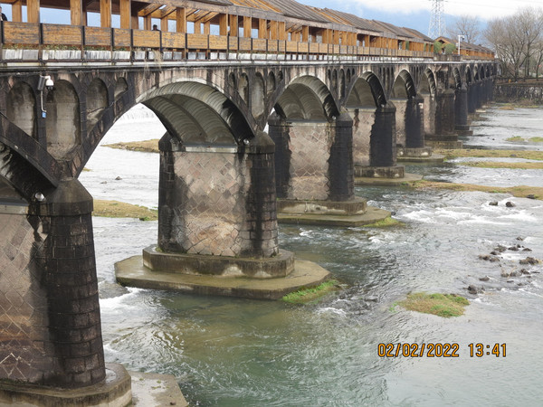 石门和石门圩两个村庄位于松阴溪两岸,连接两个村庄的石门大桥当初的设计是一座无筋无肋混凝土双曲拱桥,全长263米,它曾经是松阴溪南北交通的重要通道。在2010年12月斋坛连接线桥建成贯通,此后,石门大桥几乎废弃。因为年久失修且有安全隐患,当地政府一度考虑拆除这座大桥。随着松阴溪5A级景区打造步伐的推进,石门圩大桥因为其独特的位置再次被国内的建筑专家们关注。这时北京DnA建筑事务所接手了这座大桥的改造。他们结合松阴溪沿岸绿道的游览路线,提出了将石门大桥改造为步行廊桥和电瓶车观光游览停留点的策略,桥上俯瞰旁边的千年古堰坝午羊堰,非常漂亮,这里成为松阴溪景区的一个重要景观节点。新建的廊桥也成为两个村庄村口的共享公共空间,如同过去的风雨桥,这个网红点还是非常不错的。