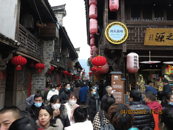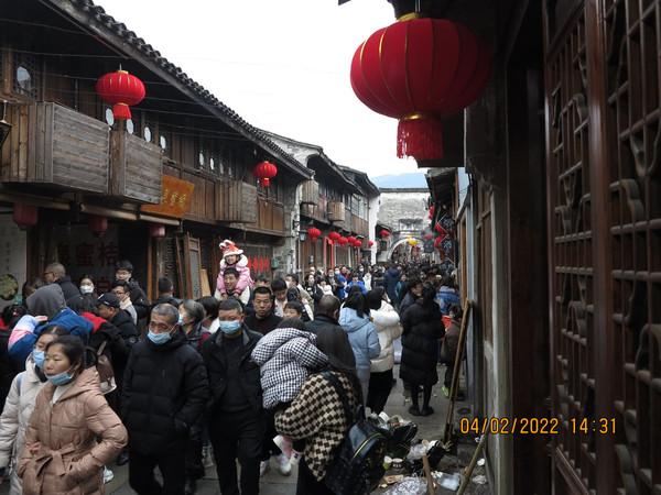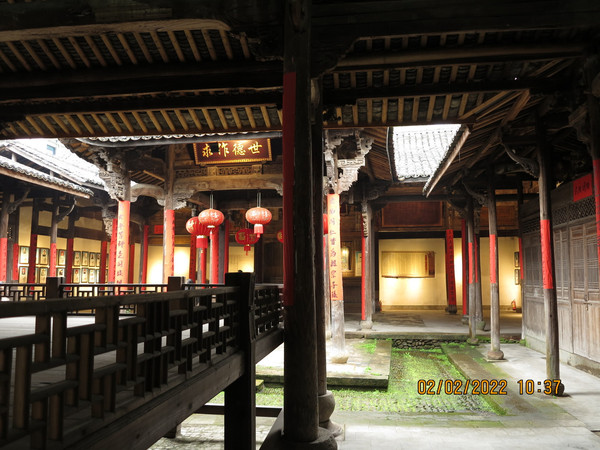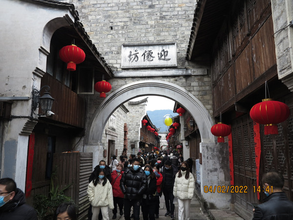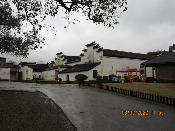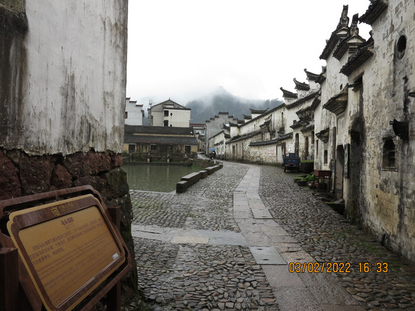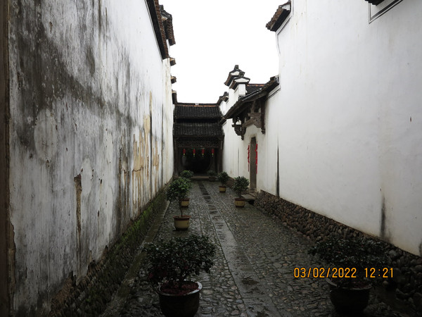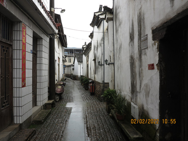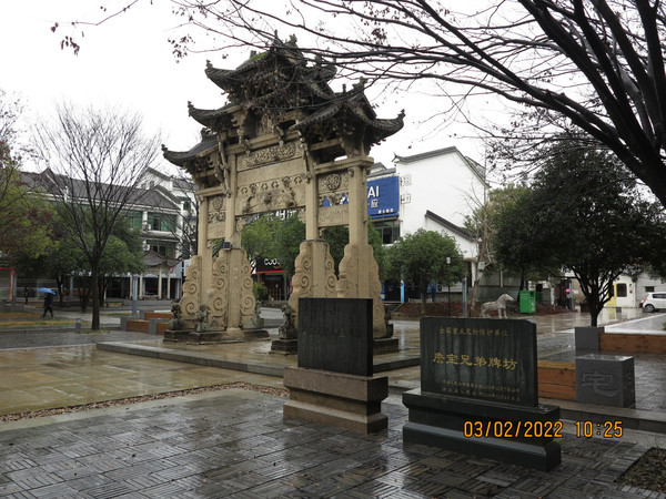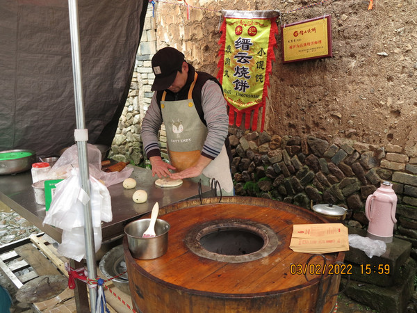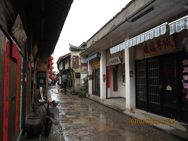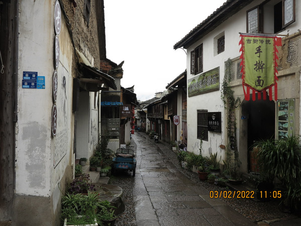 牌坊不远就是老街,春节很多店都没有开门,游客也很少,雨天走走,看看民俗展览,买了个煨盐鸡当午餐。