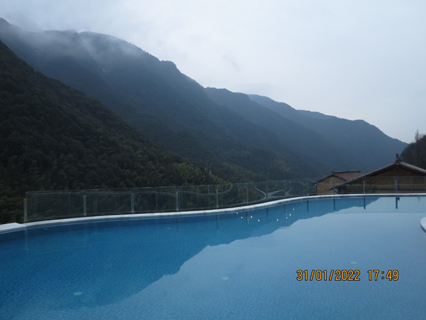 塔不算大,高29.5米,清代重修,也算漂亮。稍作休息,出发去松阳。路上车少人少,酒店在山上,最后四公里的山路也还行,赶在天黑前顺利到达酒店,酒店比预想的要好,房间大,风景好,开窗就是漂亮的山谷,山上的雪还没有消融。游乐区景观泳池漂亮,管家服务也不错,餐厅大年夜居然也能点菜吃饭,宝宝游乐区蹦蹦跳跳玩的很开心。