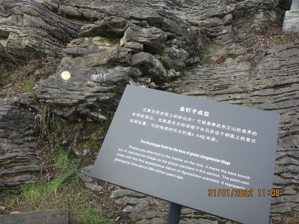 离开江山,不远的常山是我们的第二站,依旧是一个金钉子遗址--黄泥塘金钉子,这是国际地科联组织1997年1月在中国确认的第一枚“金钉子”。这里是距今4.6亿年左右一段全球标准地层剖面,地质年代是在奥陶纪中部的那一段时间。