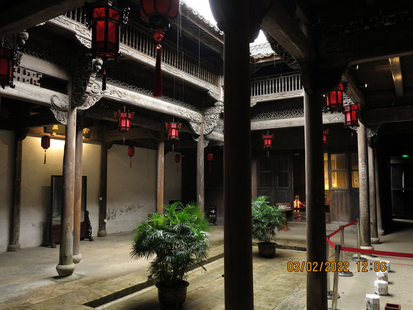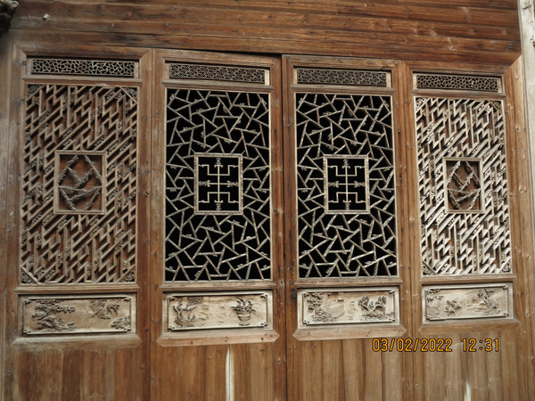 这里堪称木雕艺术殿堂,县城往西北方向2公里处有个乌井村,一进村就能看到黄家大院,前院“百寿厅”俗称“大七间”,为三进七开间,厅内雕梁画栋,技艺精湛,均以“寿”字为主题,牛腿和雀替上的200个篆休“寿”字,笔法无一雷同。后院主体是梅兰竹菊厅。门额、柱础的刻花,均围绕这一主题,尤以窗棂上的雕刻最为细致精微,出神入化。窗格之间嵌有小若指尖的蝠、蝶、鱼、石榴及雀、鹿、蜂、猴图案,栩栩如生,惟妙惟肖。雀替上还有一组劳动场景的雕刻,有砍柴的樵夫、锄禾的农夫、垂钓的渔夫等。这些富有浓郁生活情趣的画面,使黄家大院的木雕艺术充满人情味,给人以独特的道德教益和艺术享受,充分显现了古代劳动人民的聪明智慧和精湛技艺。