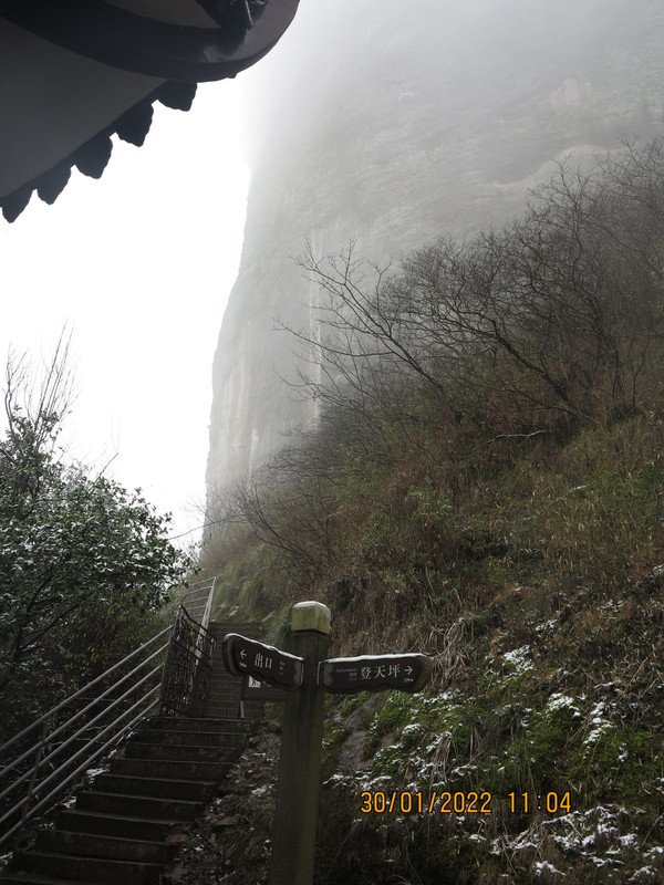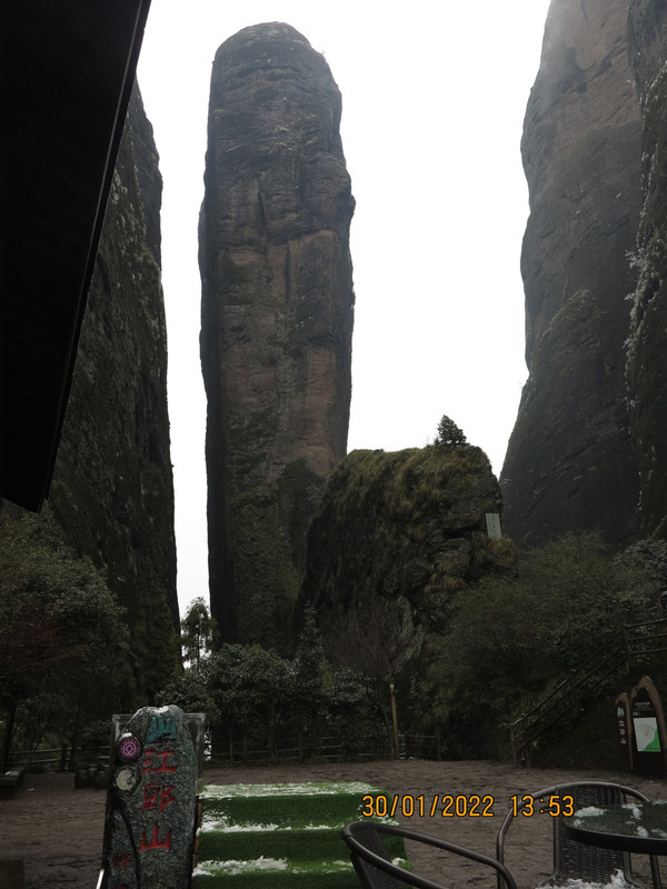 小年夜一早驱车半小时,酒店直达江郎山,顺利进山,人不多,景区班车直达山上伟人峰下,天空依旧有雾。开始爬山,周围游客稀少,店都不开,前一天下雪的痕迹都在,宝宝们玩雪非常开心。