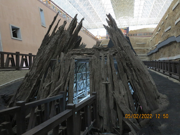 墓室由加工规整的巨大枋木构筑,呈两面坡状。木棺置于中室,由一个巨型圆木制成的独木棺。坑底铺木炭,木椁外包140层树皮,树皮外夯木炭,墓坑内填青膏泥,大墓非常震撼,也比较特别。大墓边上还有个徐渭墓,