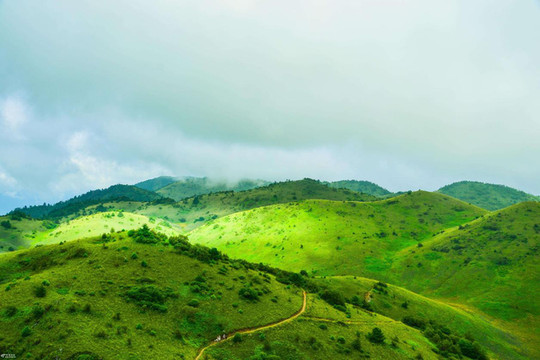 步行数百米,遇到第一个岔路口,一边是千布台阶的登天梯。走在山间的小路,脚下生风,满眼都是的绿色。