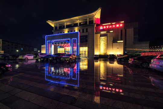 夜色渐晚,用完晚餐,今晚入住的是南宫山大酒店。