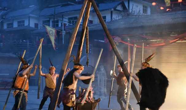 在这里,还能看到别处少见的地道巴人风情文艺表演。如,古代巴人祈求风调雨顺、鱼米满仓的民俗舞蹈《岚河渔鼓》,再现巴人悲欢离合背运“巴盐”的辛酸史,展现巴人吃苦耐劳淳厚善良的情景剧《盐道情》,还有反映巴人尊老爱幼、祈福祈寿、讲究养生的快板舞《八女拜寿》,还有体现巴人对外来入侵英勇无畏、对内崇尚和睦相处的竹马剧等等,在看完这些渗透了巴文化的歌舞之后,能以另一种角度来欣赏巴人部落的美食和美景。