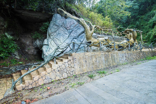 南宫山景区有南门和北门两个主门,以石板路为主,茂密的树木,在其间行走十分舒服,含氧量高的空气使得整个人变的神清气爽。